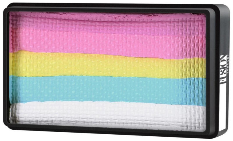 Fusion csíkos arcfesték LODIE UP Cotton Candy 30 gramm Intenzív színű, magasan pigmentált, vízesbázisú professzionális arc és testfesték. Bőrbarát, professzionális minőségű festék. Tökéletes méret az egy-mozdulat technika ecsettel történő alkalmazásához, továbbá kitünően használható a szivaccsal való munkákhoz egyaránt. A Fusion csíkos arcfesték Bright Rainbow a következő színeket tartalmazza: Prime Pink Sorbet, Prime Pastel Pink, Prime Pastel Yellow és Prime Pastel Blue, Prime White.
