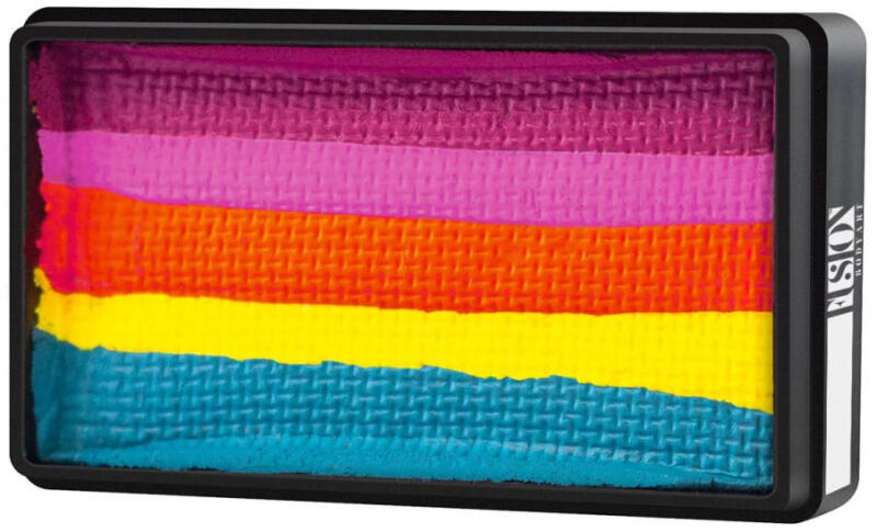 Fusion csíkos arcfesték Leanne's Rainbow Flower 30 gramm Intenzív színű, magasan pigmentált, vízesbázisú professzionális arc és testfesték. Bőrbarát, professzionális minőségű festék. Tökéletes méret az egy-mozdulat technika ecsettel történő alkalmazásához, továbbá kitünően használható a szivaccsal való munkákhoz egyaránt. A Fusion csíkos arcfesték Bright Rainbow a következő színeket tartalmazza: Prime Magic Magenta, Prime Pink Sorbet, Prime Orange, Prime Bright Yellow, Prime Deep Teal