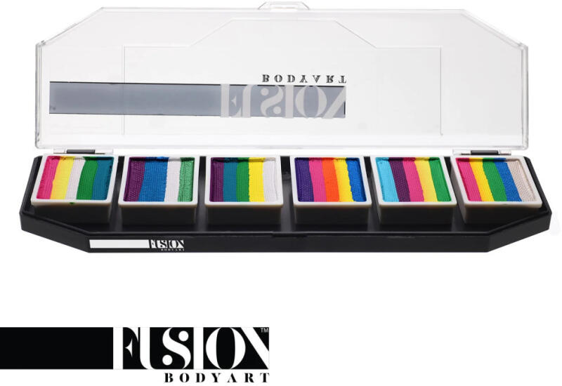 A Fusion Body Art ezt a csodálatos gyöngy- és standard színkombinációs palettát állította össze, ami tökéletesek az egyszarvú és sellő dizájnokhoz. Ezek a varázslatos csíkos egymozdulat arcfestékek kíválóan használhatók sellők festéséhez, tenger alatti hátterekhez, egyszarvú sörényekhez és testekhez, szivárvány mintákhoz. A készlet tartalma: 6 darab mini csíkos arcfestékek: Mermaid Splash, Mermaid Dreams, Mermaid Tale, Unicorn Magic, Mermaid Glow és Unicorn Sparks A paletta 6x10 gramm arc és testfestéket tartalamaz.