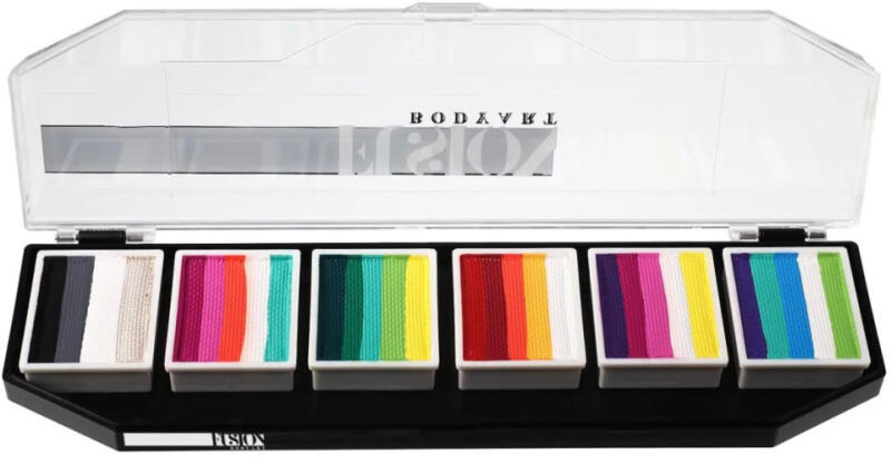 Fusion Arcfestő Paletta – Sugar Skull – A Kreatív Alkotásokhoz! Készen állsz arra, hogy káprázatos arc- és testfestéseket készíts, amelyekkel kitűnsz a tömegből? A Fusion Arcfestő Paletta – Sugar Skull ideális választás mind a kezdő művészeknek, mind a tapasztalt profiknak! Ezt a sokoldalú palettát Anna és Santi a Jestpaint-től tervezte, és tartalmazza az alapvető split cake-eket és színeket, amelyekkel számtalan arcfestés design elkészíthető születésnapi partikra, iskolai rendezvényekre vagy jótékonysági eseményekre. A paletta 6 x 10g-os (összesen 60g) terméket tartalmaz, gondosan összeválogatott árnyalatokkal, amelyek inspirálják a kreativitást. Az alkalmazás rendkívül egyszerű: használj lapos arcfestő ecsetet és vizet. A lendületes arcfestésekhez egy 1"-es lapos ecsettel töltsd fel az összes színt, vagy kisebb ecsetekkel kevesebb színt. Kezdd enyhén nedves ecsettel, és szükség szerint adj hozzá vizet. Kis arcfestő szivacsokat vagy kerek tamponokat is használhatsz. A Fusion Body Art arcfestékek könnyedén eltávolíthatók szappannal és vízzel . Magas minőségű, FDA és EU-kompatibilis, bőrbarát pigmenteket és összetevőket tartalmaznak. Gyorsan száradnak, és kenődésálló felületet biztosítanak, lehetővé téve a rétegezést és a blendinget (színátmenetek). A festékek Kínában készülnek a Fusion Body Art (ausztrál cég) felügyelete alatt, míg az összes pigment az USA-ban gyártódik. A Fusion festékek parabénmentesek, vegánok, gluténmentesek, parfümmentesek és nem tesztelték állatokon . Ajánlott száraz helyen tárolni és a felbontástól számított 12 hónapon belül felhasználni. Miért válaszd a Fusion Sugar Skull Palettát?