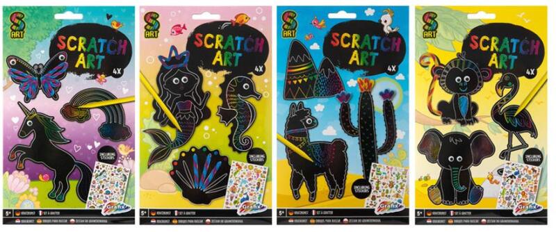 Grafix Csináld magad állatos képkarcoló 4 db/csomag, kaparó tollal, 4 féle