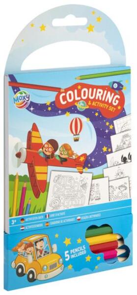 A(z) **Kifestő és foglalkoztazó szett 5 ceruzával, 2 féle** egy szórakoztató és praktikus játék a legkisebbeknek.
