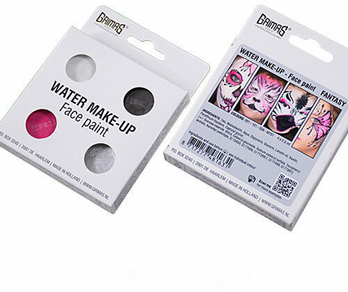 Grimas prémium minőségű professzionális arc és testfestő készlet - Fantasy 4 színű. Egyszerű a használat, nagyon jó a fedőképesség, erősen pigmentáltarc és testfetékek. A Grimas arcfestékek kiválóan alkalmasak professzionális és kezdő arcfestőknek és cosplayeknek, valamint azoknak a szülőknek, akiknek kiváló minőségű arcfestő termékre van szükségük egy bulihoz vagy csak szórakozásból. A Grimas Make Up termékeit előszeretettel használják színpadi és filmes felhasználásokra, sminkekhez. Száradás követően a színek egymásra is festhetők. A Grimas Water Make-up szín paletta, amely négy legnépszerűbb színt tartalmazza, nevezetesen: fehér (001), fekete (101), rózsaszín (508) és metál ezüst (M701). Ezek a színek számos szórakoztató arcfestési példa alapját képezik, mint például pillangók, cukorkoponyák, kemény kalózok és állatok, unikornis illetve engedd szabadjára a fantáziádat, és alkosd meg saját kreációdat ezekkel a színekkel. A doboz hátulján 4 arcfestés minta található, amivel elkészíthetőek. Tökéletes választás gyerek bulikhoz, otthoni - kisebb felhasználásra, de mégis egy prémium minőségű profi megbízható arc és testfestéket kapsz. Szett tartalma: 4x2,5 ml Grimas arc és testfesték: 1 xFehér PUREA1 (2,5 ml) 0011 x FeketePURE A1(2,5 ml) 1011 x RózsaszínPURE A1(2,5 ml) 5081 xMetal ezüst PUREA1 (2,5 ml) 701 A paletta utántölthető, a tégelyek praktikusan egymásra illeszthetőek.