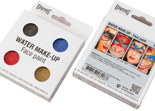 Grimas prémium minőségű professzionális arc és testfestő készlet - Hero 4 színű. Egyszerű a használat, nagyon jó a fedőképesség, erősen pigmentáltarc és testfetékek. A Grimas arcfestékek kiválóan alkalmasak professzionális és kezdő arcfestőknek és cosplayeknek, valamint azoknak a szülőknek, akiknek kiváló minőségű arcfestő termékre van szükségük egy bulihoz vagy csak szórakozásból. A Grimas Make Up termékeit előszeretettel használják színpadi és filmes felhasználásokra, sminkekhez. Száradás követően a színek egymásra is festhetők. A Grimas Water Make-up szín paletta, amely négy legnépszerűbb színt tartalmazza, nevezetesen: fekete (101), kék (301), piros (505) és gyöngyház arany (P702). Ezek a színek számos szórakoztató arcfestési példa alapját képezik, mint például Hősök festéséhez, Vasember, Super women, Pókember... illetve engedd szabadjára a fantáziádat, és alkosd meg saját kreációdat ezekkel a színekkel. A doboz hátulján 4 arcfestés minta található, amivel elkészíthetőek. Tökéletes választás gyerek bulikhoz, otthoni - kisebb felhasználásra, de mégis egy prémium minőségű profi megbízható arc és testfestéket kapsz. Szett tartalma: 4x2,5 ml Grimas arc és testfesték: 1 x FeketePURE A1(2,5 ml) 1011 x KékPURE A1(2,5 ml) 3011 x PirosPURE A1(2,5 ml) 5051 xGyöngyház arany PEARL PUREA1 (2,5 ml) 702 A paletta utántölthető, a tégelyek praktikusan egymásra illeszthetőek.