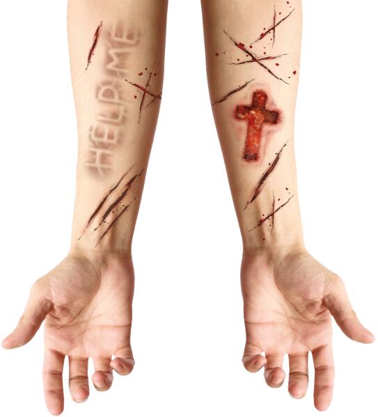 Tetoválás készlet - Help me A farsangi vagy halloween jelmeze hitelesebbnek tűnhet a különféle kiegészítőknek, például a Help me feliratú tetoválásnak köszönhetően. Ez a kiegészítő alkalmas különféle farsangi jelmezekhez , a használatát természetesen au elkébzelésére bízzuk.