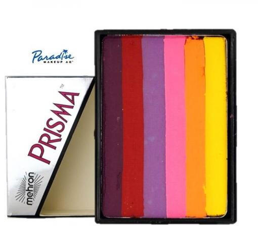 A Mehron Paradise Makeup AQ Prisma Sunset csíkos világhírű prémium minőségű Amerikai arc és testfesték. Kiváló a színtartósága, nagyon könnyen felvihető a börre, és remekül keverhető más színekkel.