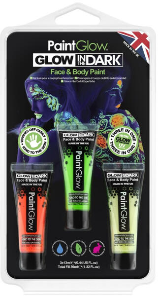 PaintGlow Glow in the Dark Neon UV arc- és testfesték készlet 3 színű - mkkreativ