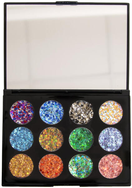 A PXP Csillámos krém készlet azonnal használatra kész, ami egy olajos viasz alapú krém, nagy - Chunky csillámokkal keverve. 12 különböző színvariáció egy készletben, minőségi, igényes tükörrel ellátott tárolóban. Mivel a csillámok ebbe a speciális csillámviaszba van bele keverve, így gyorsan és egyszerűen felvihető a sminkre egy lépésben. Arc- és testfestések mellé kiegészítő dekorációnak - a kész festésekre is könnyen kenhető!Kíválóan alkalmazhatók arc és testfestés kiegészítésként, díszítésre, sminkhez. Az előre összekevert formula gondoskodik arról, hogy nincs szükség külön ragasztóra, a könnyű felvitelhez, így lehetővé teszi, hogy percek alatt káprázatos mintákat készíts! A krémet úgy fejlesztették ki, hogy az arcfestékre is felvihtő legyen anélkül, hogy az feloldódna. Tartalom: 12 x 1,5 gramm Színek: - Shiny chrystals