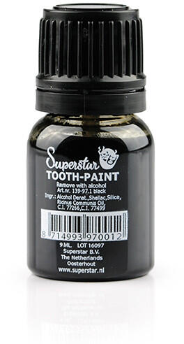 Superstar Fogfesték – Fekete (9 ml) – Drámai Mosoly Percek Alatt! Készen állsz egy igazán karakteres és meglepő kiegészítőre a jelmezedhez vagy sminkedhez? A Superstar Fogfesték – Fekete (9 ml) a tökéletes választás, ha pillanatok alatt feketévé varázsolnád fogaidat! Ez a speciális festék ideális kiegészítő farsangra, Halloweenre, goth tematikájú partikra, vámpírjelmezekhez vagy színházi előadásokra, filmforgatásokra. A Superstar Fekete Fogfesték egy egyszerűen használható termék, amellyel könnyedén, átmenetileg fekete színűvé festheted a fogaidat. A 9 ml-es kiszerelésű üvegcse kupakjában egy praktikus ecset is található, így azonnal nekiláthatsz az alkalmazásnak. Használat előtt alaposan rázd fel az üveget, majd egy száraz papírzsebkendővel szárítsd meg a fogadat . Vigye fel a festéket az ecsettel vagy egy vattapálcikával, majd hagyd pár másodpercig száradni – és máris kész a félelmetes vagy drámai fekete mosoly! Fontos figyelmeztetés: A fogfestéket nem szabad használni műfogakon és fogtöméseken! Eltávolítás: A festék eltávolítása is rendkívül egyszerű. Használj papírzsebkendőt vagy tiszta törlőkendőt, amit 70%-os alkohollal nedvesítettél be, és töröld le vele a festéket. Az esetleges maradékokat fogkefével és fogkrémmel történő fogmosással könnyedén eltávolíthatod. Főbb jellemzők: