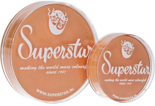 Superstar arcfesték - Barack 16g /Peach 104/ Kiszerelés: 16 gramm A Superstar Aqua Face and Body Paint professzionális, felhasználóbarát, kiváló minőségű, bőrbarát, víz alapú arc és testfeték, amely megfelel az európai kozmetikai jogszabályok (1223/2009/EC) szigorú követelményeinek. Az arcfestékeket Hollandiában gyártják, nem tartalmaz parfümöt, parabéneket és mikroműanyagot, továbbá nem tesztelték állatokon. A színek gyönyörű élénkek, egyszerű a használata, jó a fedőképessége, nagyon magasan pigmentált, szivaccsal és ecsettel könnyen felfesthető. Száradás követően a színek egymásra is festhetők. A színek keveréséevel - összemosásával csodás színátmeneteket hozhatunk létre. A Superstar festékek a meleg hőmérsékletnek is jól ellenállnak, száradás követően nem kenődik el. Könnyen eltávolítható a bőrről, szappanos langyos vízzel. Egy vékony Superstar festékréteg is elegendő az alapozáshoz. Előszeretettel használják az arc és testfestő világversenyeken.
