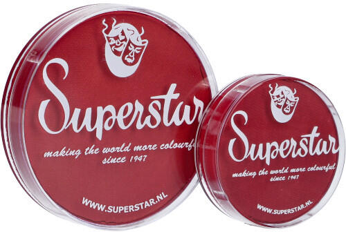 Superstar arcfesték - Cseresznye 16g Cerise 040// Kiszerelés: 16 gramm A Superstar Aqua Face and Body Paint professzionális, felhasználóbarát, kiváló minőségű, bőrbarát, víz alapú arc és testfeték, amely megfelel az európai kozmetikai jogszabályok (1223/2009/EC) szigorú követelményeinek. Az arcfestékeket Hollandiában gyártják, nem tartalmaz parfümöt, parabéneket és mikroműanyagot, továbbá nem tesztelték állatokon. A színek gyönyörű élénkek, egyszerű a használata, jó a fedőképessége, nagyon magasan pigmentált, szivaccsal és ecsettel könnyen felfesthető. Száradás követően a színek egymásra is festhetők. A színek keveréséevel - összemosásával csodás színátmeneteket hozhatunk létre. A Superstar festékek a meleg hőmérsékletnek is jól ellenállnak, száradás követően nem kenődik el. Könnyen eltávolítható a bőrről, szappanos langyos vízzel. Egy vékony Superstar festékréteg is elegendő az alapozáshoz. Előszeretettel használják az arc és testfestő világversenyeken.