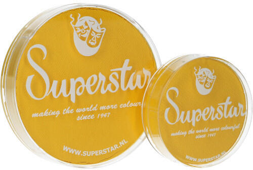 Superstar arcfesték - Élénksárga 16g /Bright Yellow 044/ Kiszerelés: 16 gramm A Superstar Aqua Face and Body Paint professzionális, felhasználóbarát, kiváló minőségű, bőrbarát, víz alapú arc és testfeték, amely megfelel az európai kozmetikai jogszabályok (1223/2009/EC) szigorú követelményeinek. Az arcfestékeket Hollandiában gyártják, nem tartalmaz parfümöt, parabéneket és mikroműanyagot, továbbá nem tesztelték állatokon. A színek gyönyörű élénkek, egyszerű a használata, jó a fedőképessége, nagyon magasan pigmentált, szivaccsal és ecsettel könnyen felfesthető. Száradás követően a színek egymásra is festhetők. A színek keveréséevel - összemosásával csodás színátmeneteket hozhatunk létre. A Superstar festékek a meleg hőmérsékletnek is jól ellenállnak, száradás követően nem kenődik el. Könnyen eltávolítható a bőrről, szappanos langyos vízzel. Egy vékony Superstar festékréteg is elegendő az alapozáshoz. Előszeretettel használják az arc és testfestő világversenyeken.