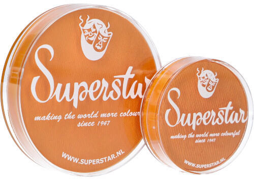 Superstar arcfesték - Világosnarancs 16g /Light orange 046/ Kiszerelés: 16 gramm A Superstar Aqua Face and Body Paint professzionális, felhasználóbarát, kiváló minőségű, bőrbarát, víz alapú arc és testfeték, amely megfelel az európai kozmetikai jogszabályok (1223/2009/EC) szigorú követelményeinek. Az arcfestékeket Hollandiában gyártják, nem tartalmaz parfümöt, parabéneket és mikroműanyagot, továbbá nem tesztelték állatokon. A színek gyönyörű élénkek, egyszerű a használata, jó a fedőképessége, nagyon magasan pigmentált, szivaccsal és ecsettel könnyen felfesthető. Száradás követően a színek egymásra is festhetők. A színek keveréséevel - összemosásával csodás színátmeneteket hozhatunk létre. A Superstar festékek a meleg hőmérsékletnek is jól ellenállnak, száradás követően nem kenődik el. Könnyen eltávolítható a bőrről, szappanos langyos vízzel. Egy vékony Superstar festékréteg is elegendő az alapozáshoz. Előszeretettel használják az arc és testfestő világversenyeken.