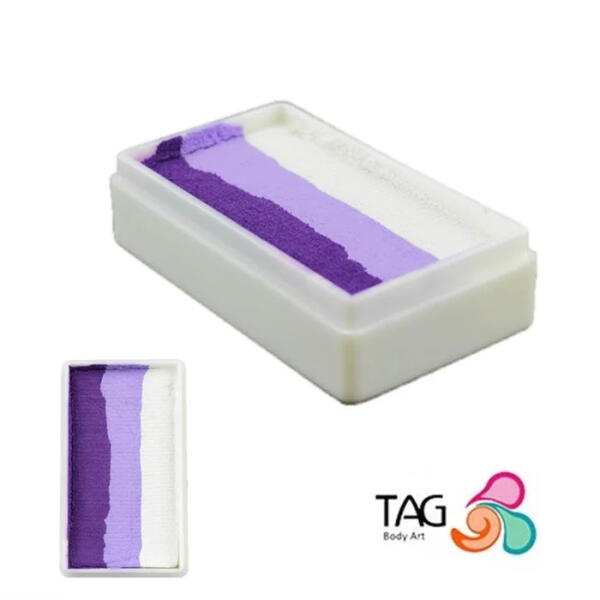 TAG Body Art csíkos arc és testfesték 30 grammos kivitelben: IRISIntenzív, magasan pigmentált, vízesbázisú professzionális arc és testfesték. Bőrbarát, professzionális minőségű festék. Tökéletes méret az egy-mozdulat technika ecsettel történő alkalmazásához, továbbá kitünően használható a szivaccsal való munkákhoz egyaránt. 3 színt tartalmaz egymás mellett.